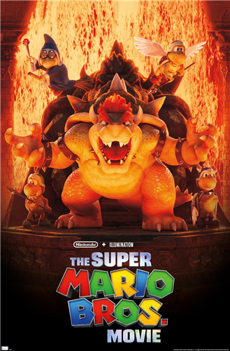 A partir del 3 de febrero de 2023, las cuentas oficiales de la película y de las compañías involucradas comenzaron publicaron el primer póster oficial presentando los personajes principales: Mario, Luigi, Bowser, la Princesa Peach, Toad, Donkey Kong, Kamek y un Koopa Paratroopa con caparazón con pinchos. A partir del 8 de febrero en adelante, se publicaron posters individuales para la mayoría de estos personajes, culminando el 22 de febrero donde se presenta el segmento de carreras en la que se incluye, además de los personajes mencionados, a Cranky Kong y un Bob-Omb. Un poster adicional relacionado con el filme fue encontrado en el sitio web de Trends International.