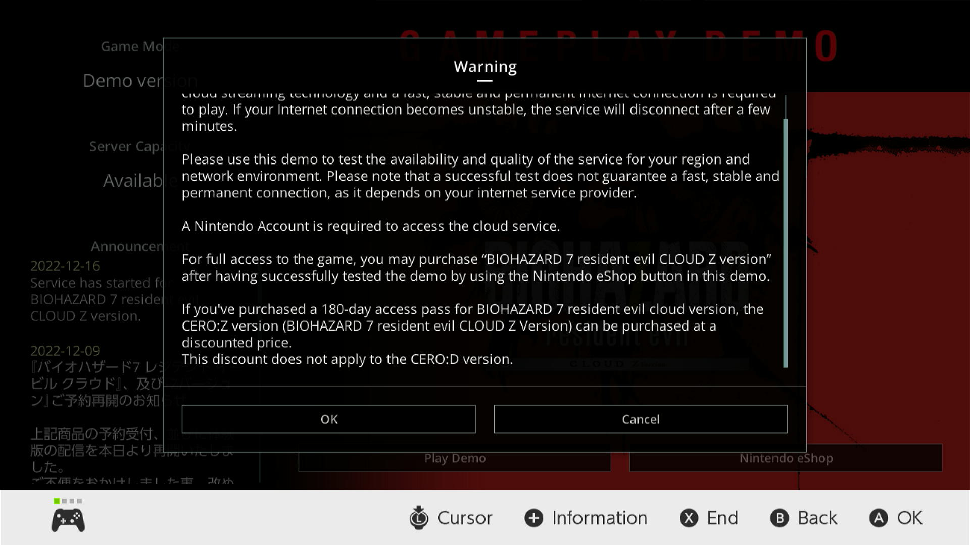 Capcom realizó recordatorio a los usuarios de Nintendo Switch en Japón de la finalización de los servicios para la versión de alquiler de Resident Evil VII biohazard Cloud, una de las opciones que se proporcionaba para jugar el título durante un período de 180 días. La versión sin límites de tiempo continuará disponible.