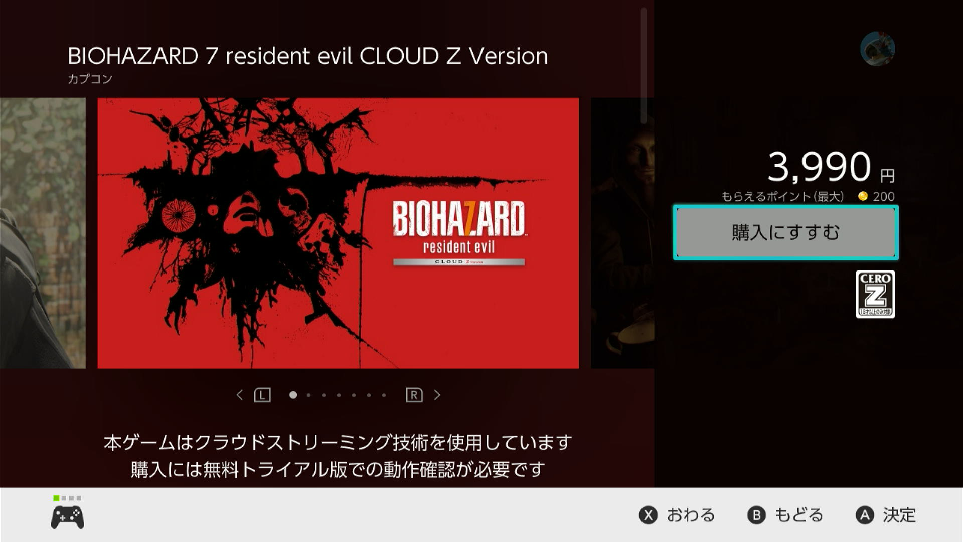 Esta edición de Resident Evil VII biohazard, que utiliza la tecnología basada en la nube, fue lanzada en Mayo de 2018 en Japón bajo dos versiones, cada una para las clasificaciones de edades CERO D y CERO Z, siendo el primero una versión moderadamente censurada. Para poder jugar al título, es necesaria una conexión permanente a internet.