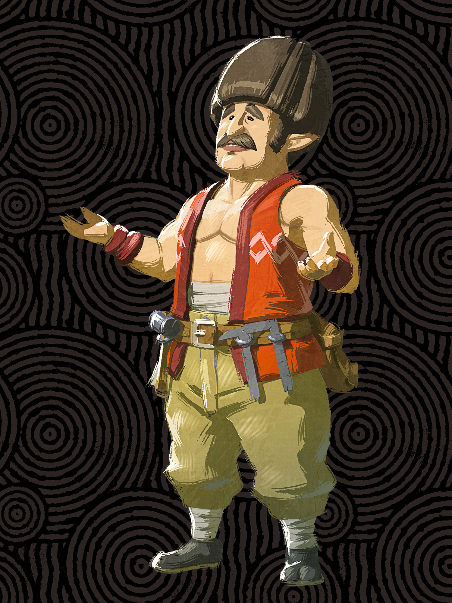 Este joven y corpulento goron es Yunobo, un aliado de Link que recientemente ha abierto su propia explotación minera en la Montaña de la Muerte. Aunque siempre ha destacado por su carácter amable y solícito, ahora se comporta de manera extraña…