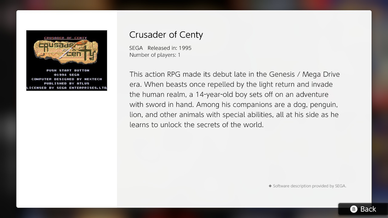 Crusader of Centy (SEGA) – Sega Genesis (1995), Sega Mega Drive (EU, 1995; JP & KR, 1994)