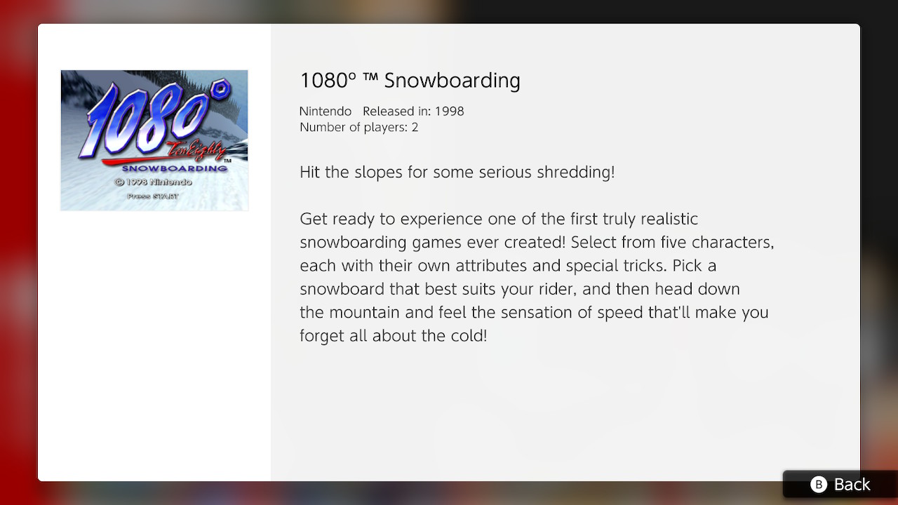 - Este es el 4to título para el Switch Online que está ligado con la licencia de un tercero por contenido ajeno a los videojuegos, siendo en este caso con Lamar Snowboards, Inc. y Tommy Hilfiger Licensing Inc.