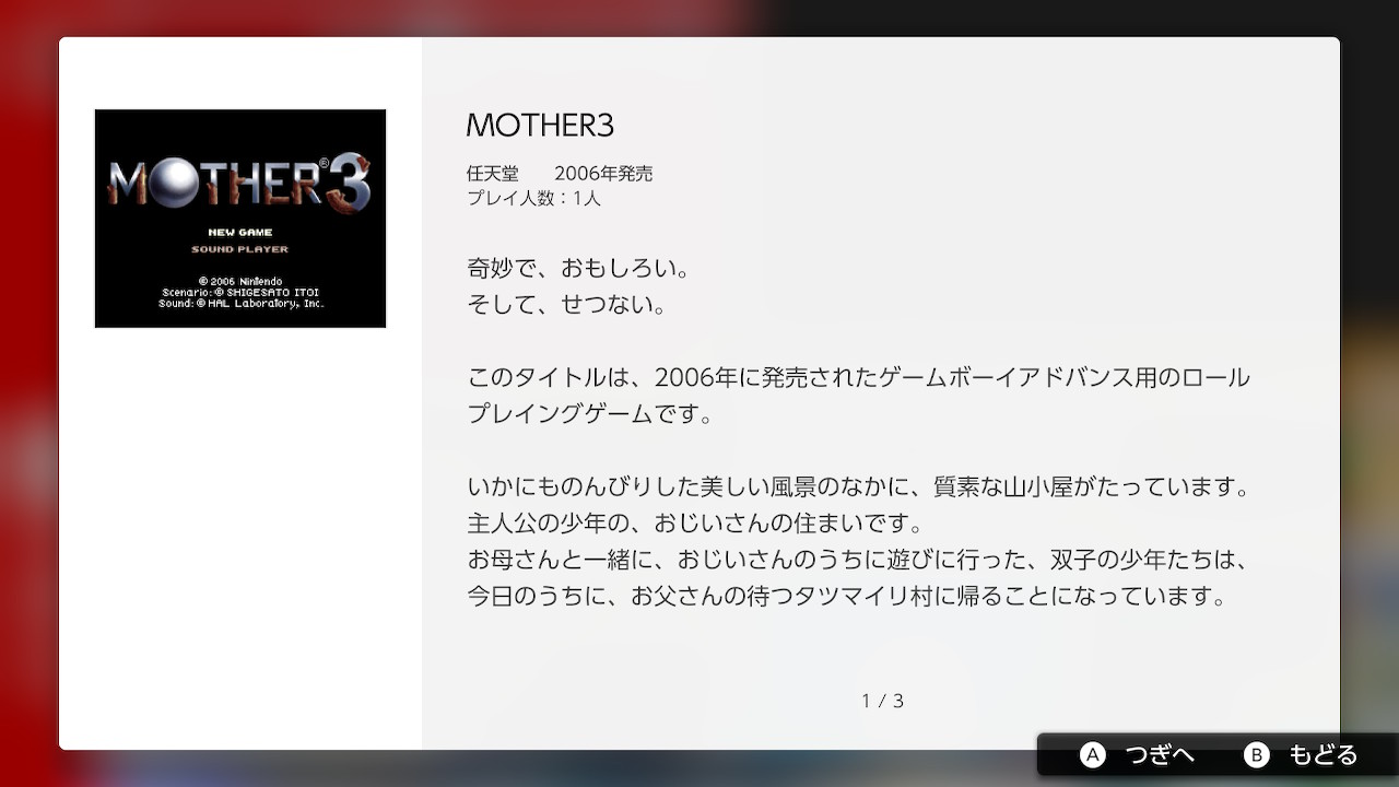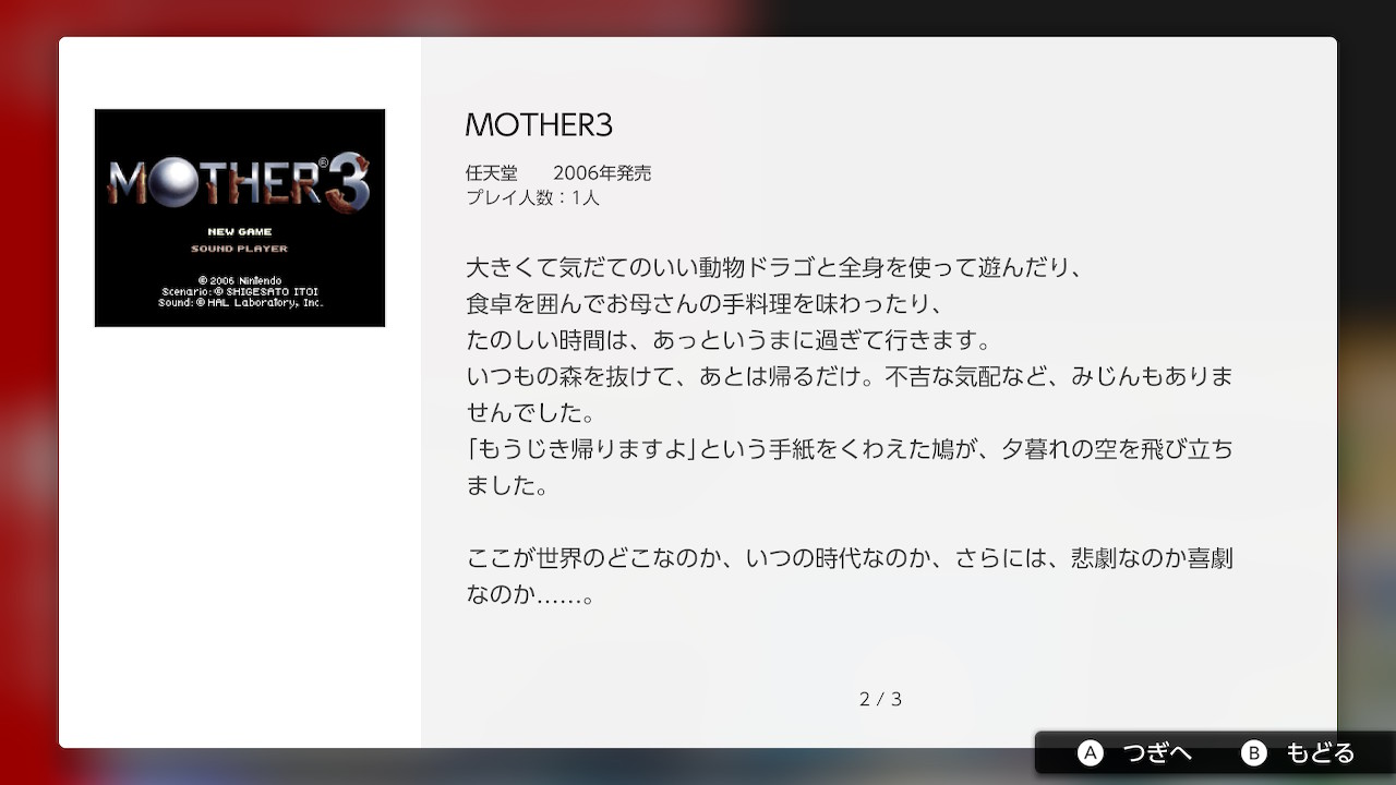 A continuación, se presentan la descripción de cada uno de los juegos en Español (salvo por MOTHER3, que estará en su idioma original):