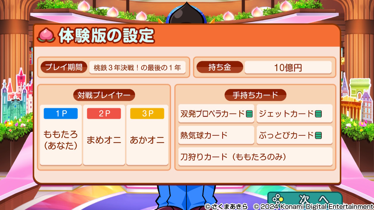 - Jugadores: Presidente Momotaro (tú), Mameoni (COM), Akaoni (COM)