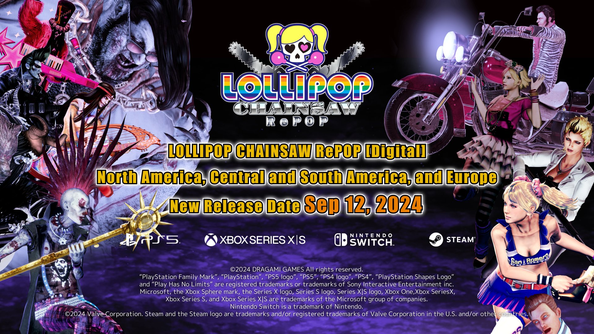 Dragami Games anunció un cambio en la fecha de lanzamiento de Lollipop Chainsaw RePOP, una remasterización de Lollipop Chainsaw, para las Américas y Europa, pasando de su fecha original del 25 de septiembre al 12 de septiembre de 2024. Estará disponible para Nintendo Switch, PlayStation 5, Xbox Series y PC (Steam) por US$44.99.