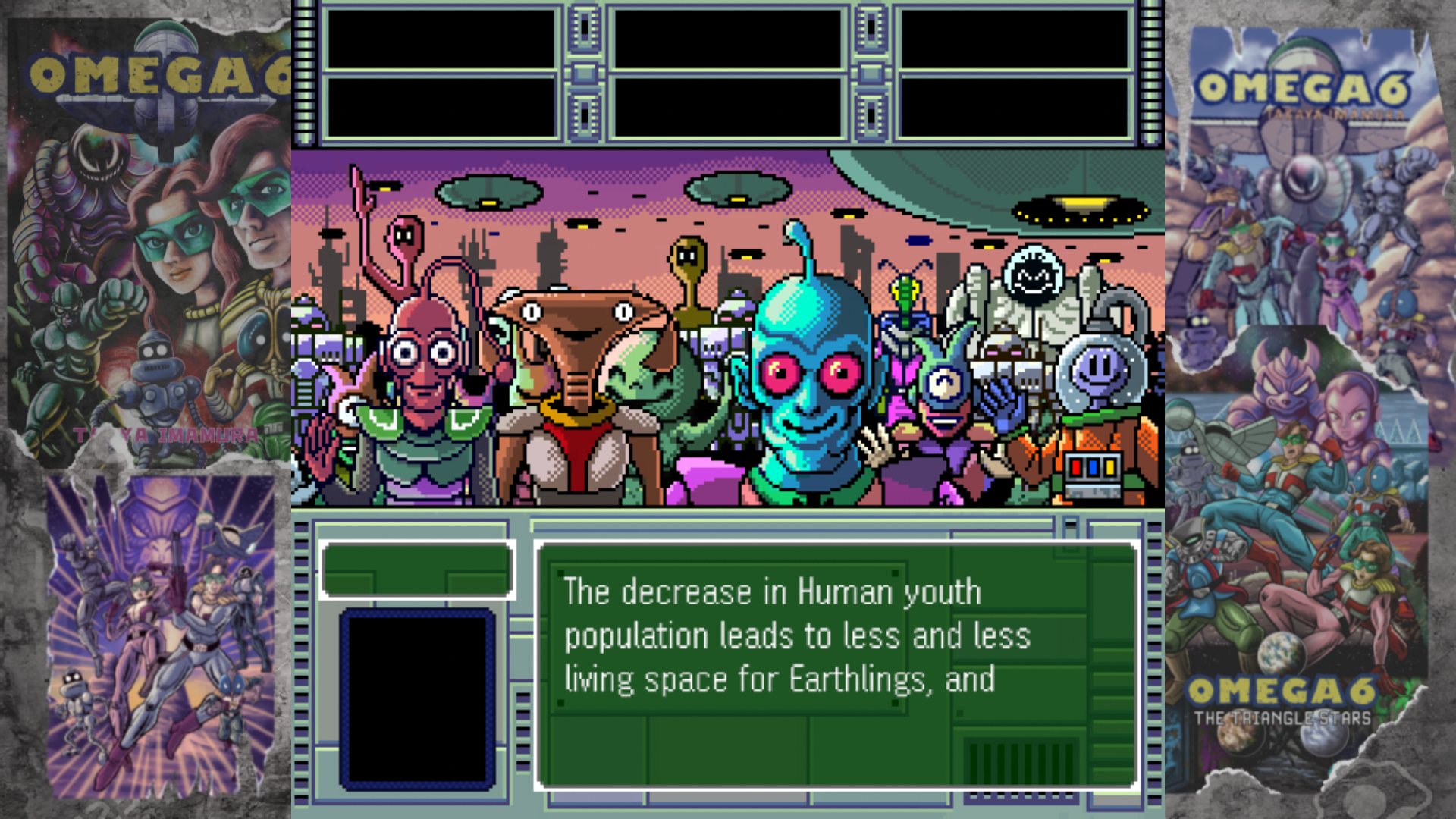 OMEGA 6: The Triangle Stars es un juego de aventura con elementos RPG de estilo retro-futurista en 16 bits, basado en el manga «OMEGA 6» de Takaya Imamura, distribuido por Dark Horse Comics. El título recibió su lanzamiento en Japón el 25 de julio del presente año en formato digital y físico.