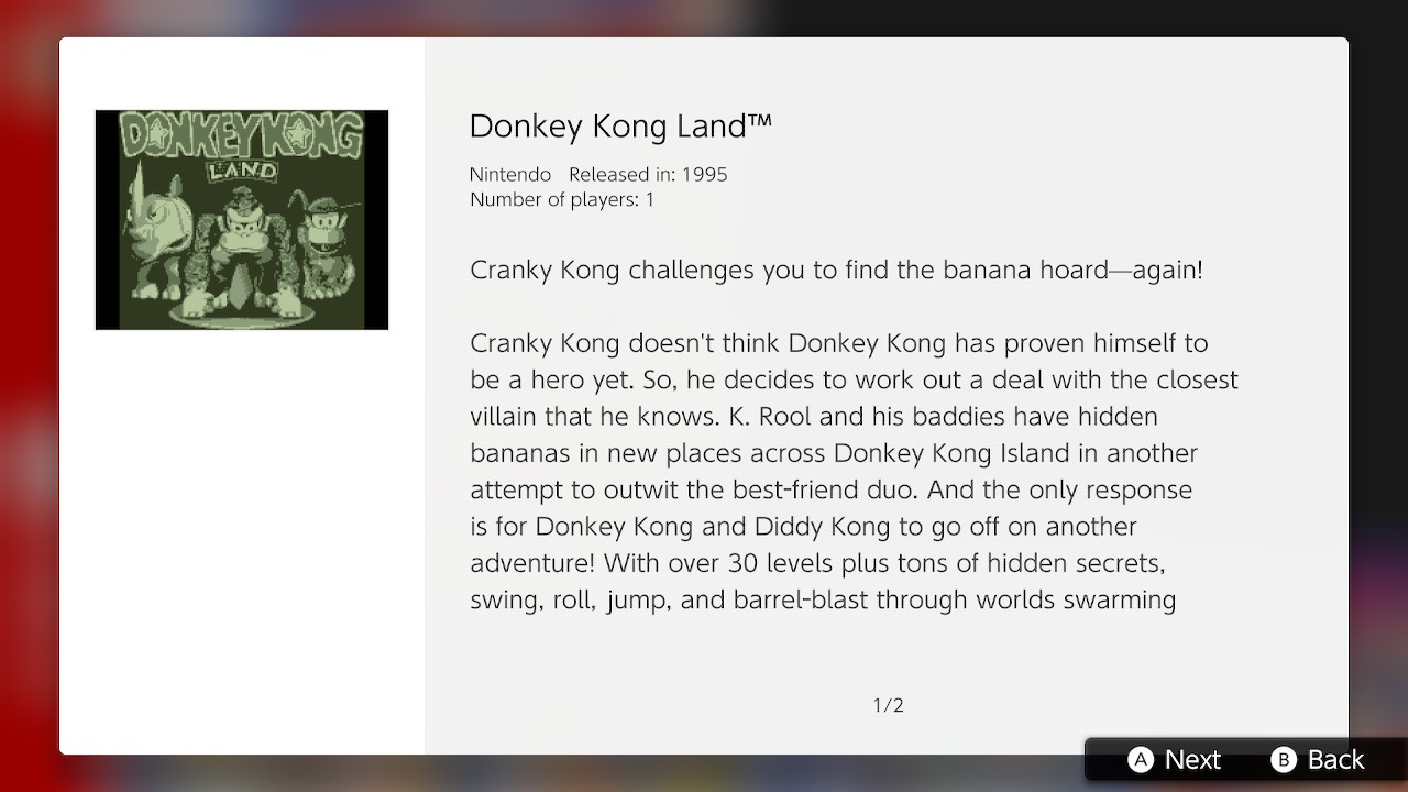 Game Boy – Nintendo Switch Online (Ver. 1.10.0): Donkey Kong Land es añadido a la librería del servicio