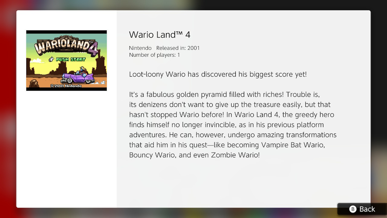 Game Boy Advance – Nintendo Switch Online (Ver. 2.0.0) | Wario Land 4 se presenta en la librería del servicio