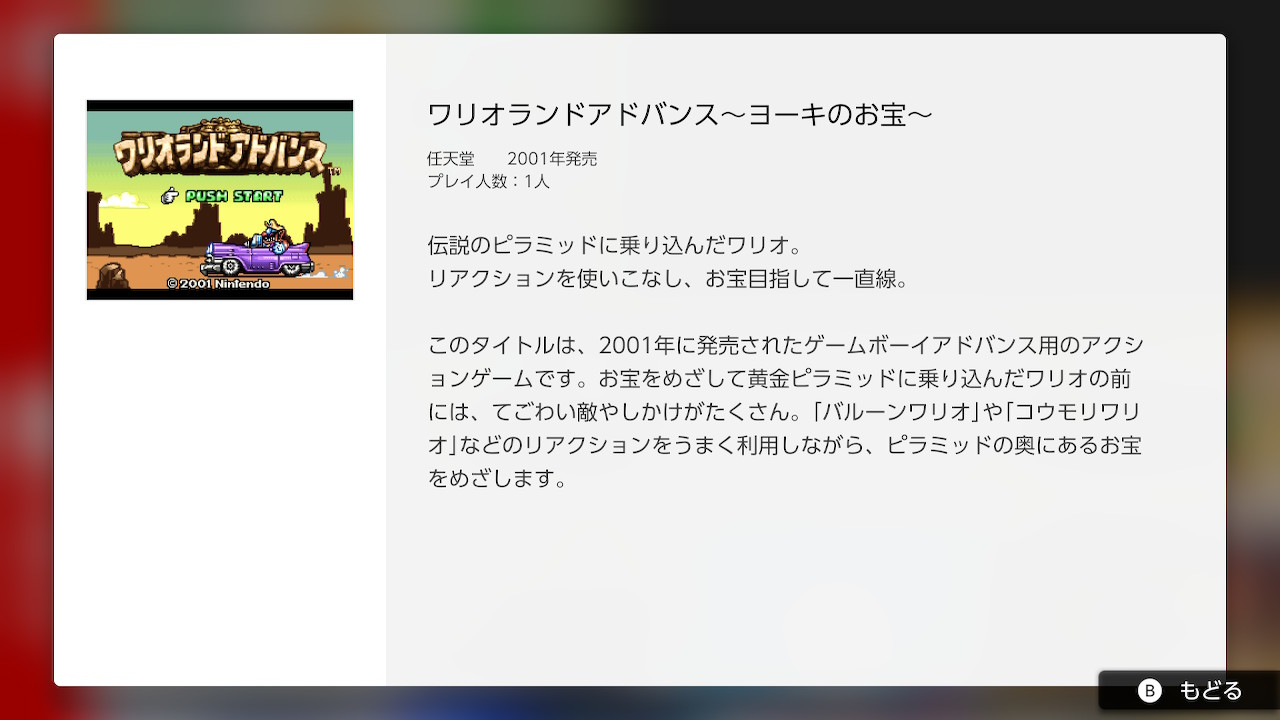Nintendo ha distribuido la actualización de software a la versión 2.0.0 para las apps de Game Boy Advance – Nintendo Switch Online, añadiendo a Wario Land 4 en la librería de juegos clásicos del servicio.