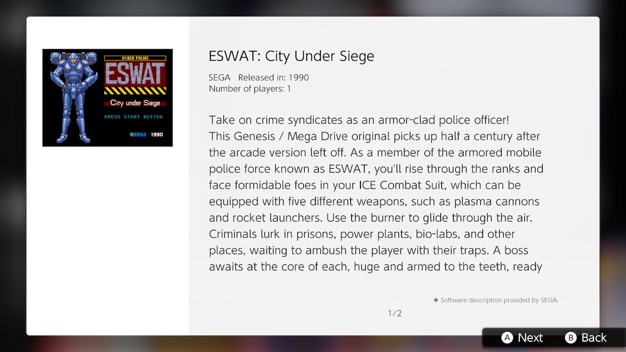 Sega Genesis/Mega Drive for Nintendo Switch Online (ver. 3.1.1) | Streets of Rage, Super Thunder Blade y ESWAT: City Under Siege son añadidos a la librería del servicio [Actualizado, ver. 3.1.2 disponible]