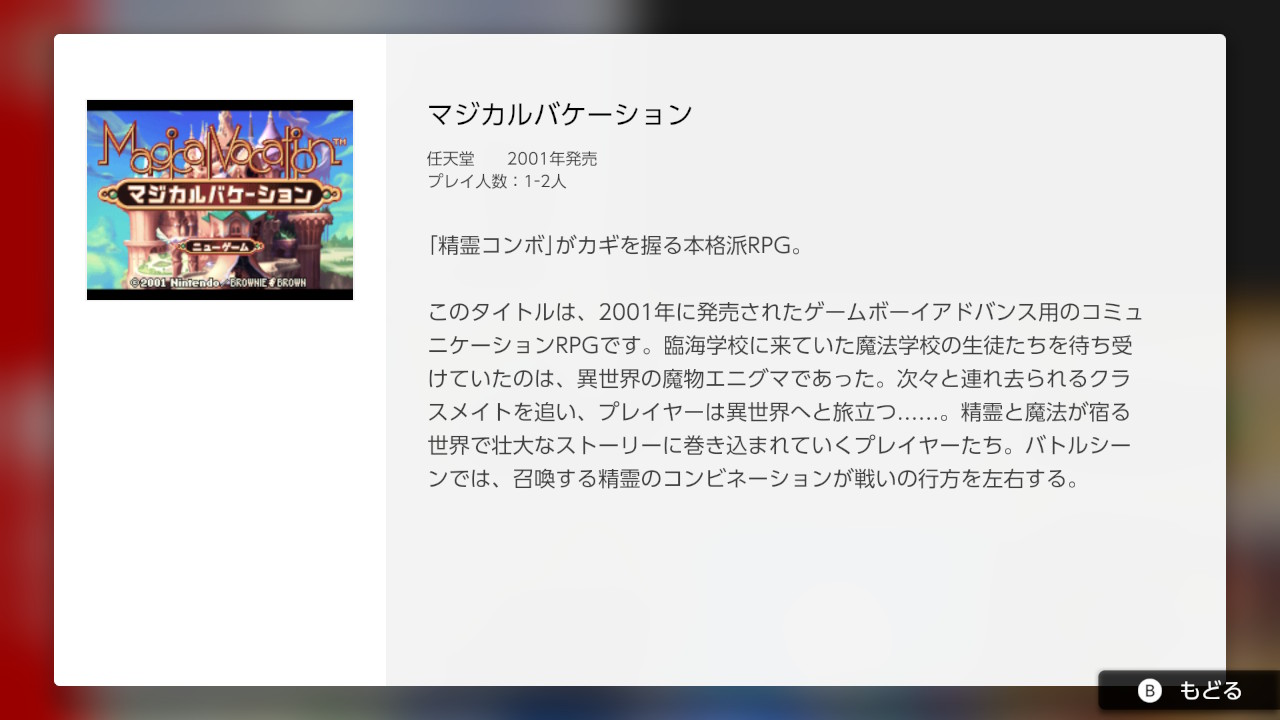 Finalmente, se presentará la descripción oficial en español dada para Forsaken 64, y en japonés para Magical Vacation, junto a una serie de capturas con el menú de las aplicaciones y las descripciones de los juegos.