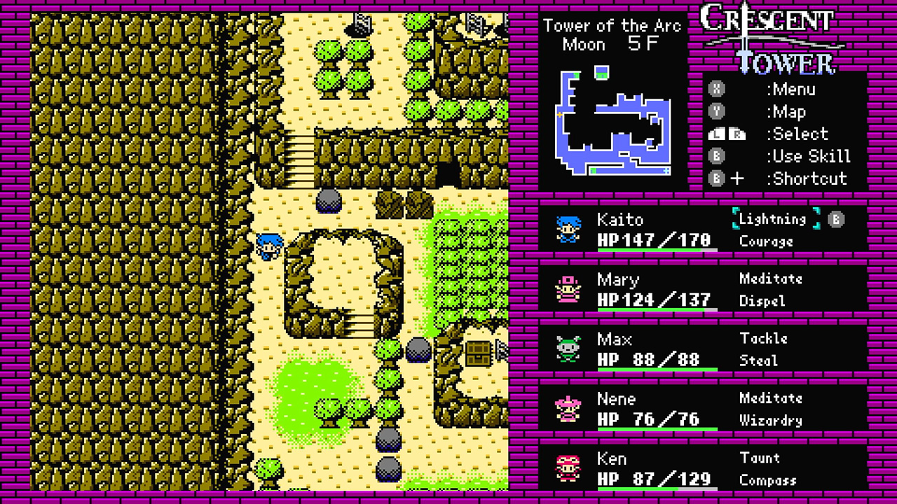 Crescent Tower es un RPG de mazmorras de 8 bits, con varios elementos del juego inspirados en títulos del género de rol de la década de los 1980s. El título se lanzó primeramente como acceso anticipado en noviembre de 2024, recibiendo su versión final en PC (Steam) en agosto de este año.