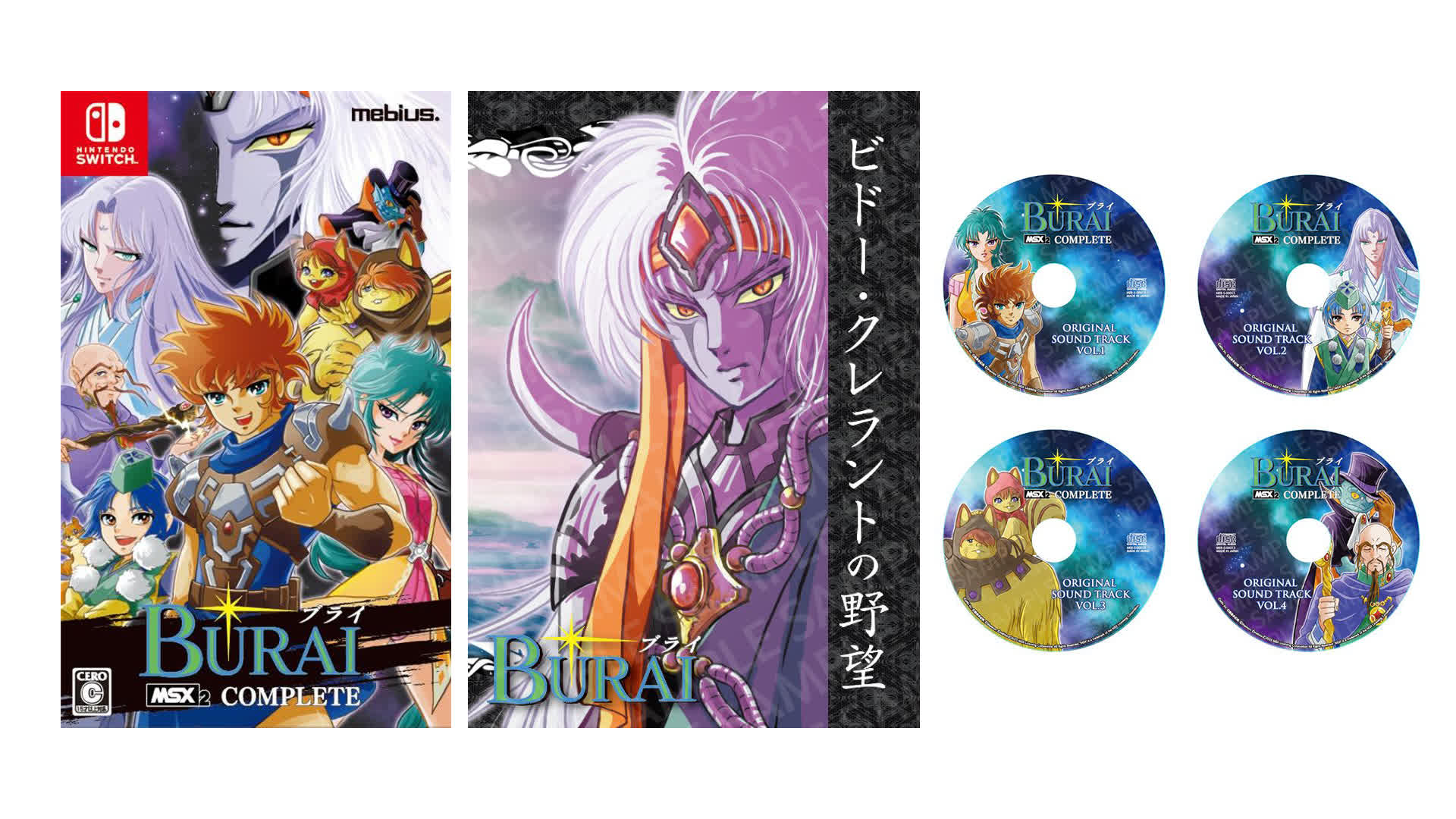 En anticipación al relanzamiento del juego, Mebius ha presentado información adicional acerca de BURAI MSX2 COMPLETE, la cual tendrá lanzamiento en físico bajo dos formatos: una edición estándar de 5,500 yenes, y la edición limitada de 11,000 yenes, la cual contendrá la banda sonora de ambos juegos en 4 CDs, una novela escrita por el autor del juego, Takiya Iijima, bajo el nombre de «ビドー・クレラントの野望» (Bido Klerant’s Ambition), y el juego en físico.