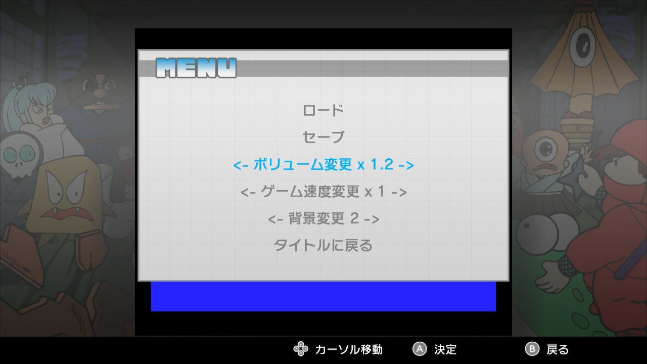 - Elegir el volumen del juego, el cual difiere con la del menú del emulador en la escala: x0, x0.2, x0.5, x0.8, x1, x1.2