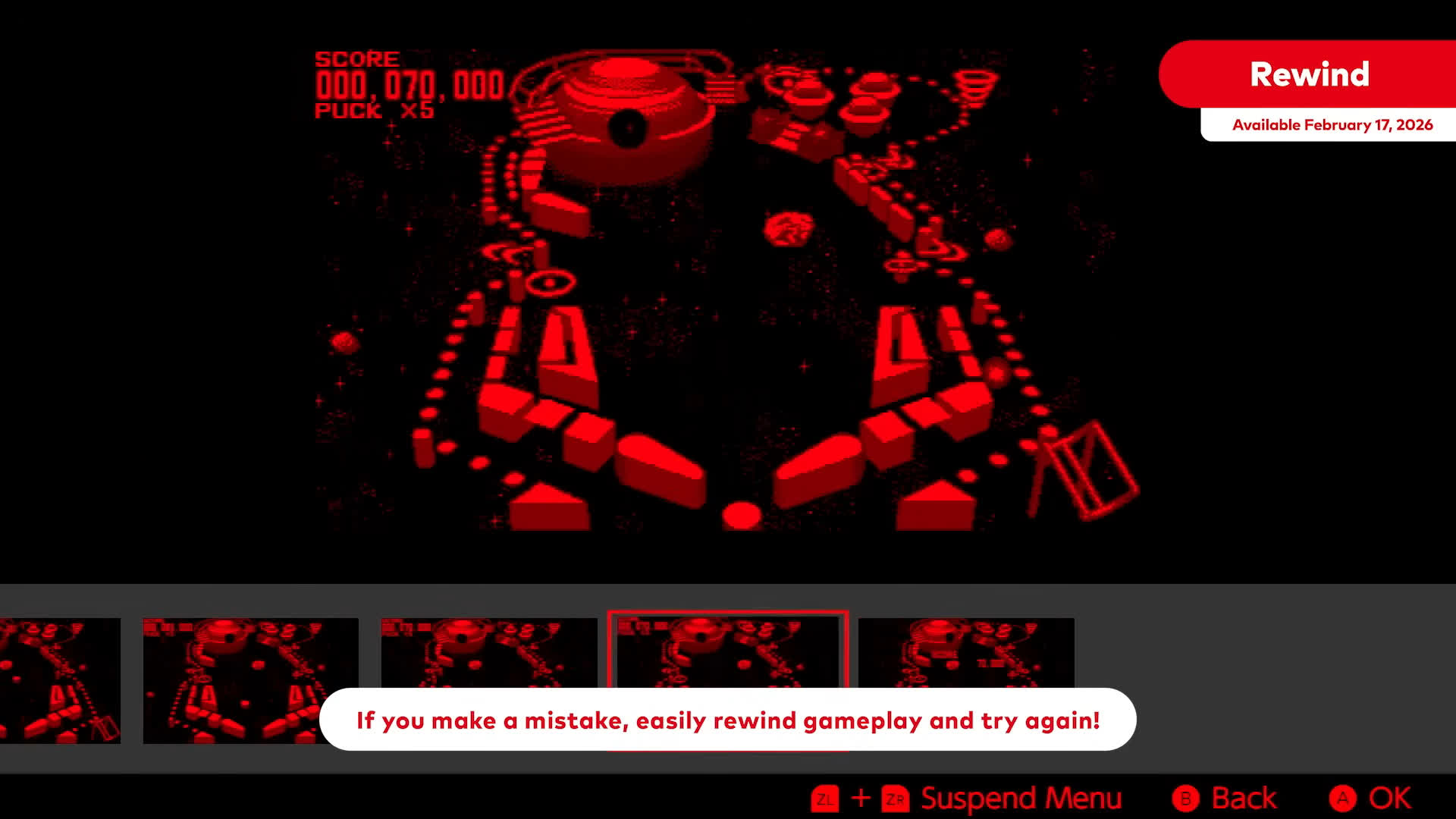 Similar a otros emuladores disponibles en el servicio, la app de Virtual Boy – Nintendo Classics cuenta con la función de rebobinado (rewind), que permite suspender la partida, retroceder a un punto anterior y continuar desde dicho punto; y la posibilidad de visualizar y cambiar los controles que, de manera predeterminada, asigna el pad direccional izquierdo del control original en la cruceta y palanca izquierda del mando de Switch/Switch 2, mientras que el pad direccional derecho con la palanca derecha.