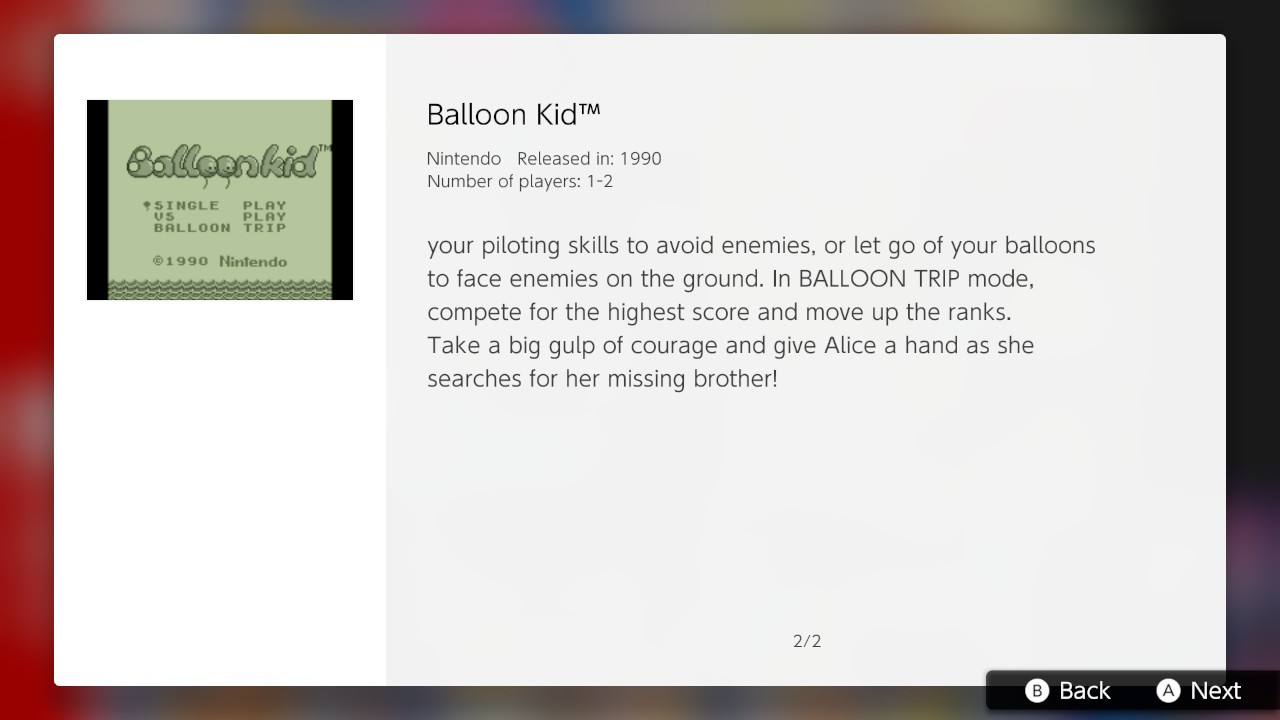 Game Boy – Nintendo Classics (Ver. 3.1.0) | Balloon Kid / Balloon Fight GB y la versión de Game Boy de Yoshi son añadidos al catálogo del servicio